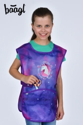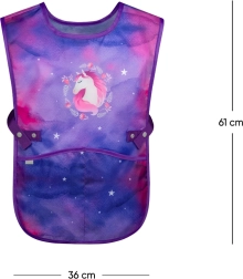 Slogoven otroški predpasnik z motivom konja, idealen za likovno vzgojo, delovne aktivnosti in druge krožke. Izdelan iz omeljivega materiala za enostavno vzdrževanje.