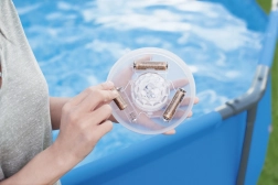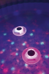 Ta moderna LED svetilka je enostavna za uporabo: vstavite tri baterije AA (niso priložene), postavite svetilko na površino vode in pritisnite gumb na vrhu. Ne potrebujete kablov ali povezave na električno omrežje. Zasnovana je tako, da nežno osvetljuje površino vode s širino 2,43 m in globino 1,52 m. Samodejno se izklopi po eni uri neaktivnosti.