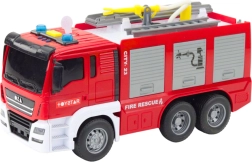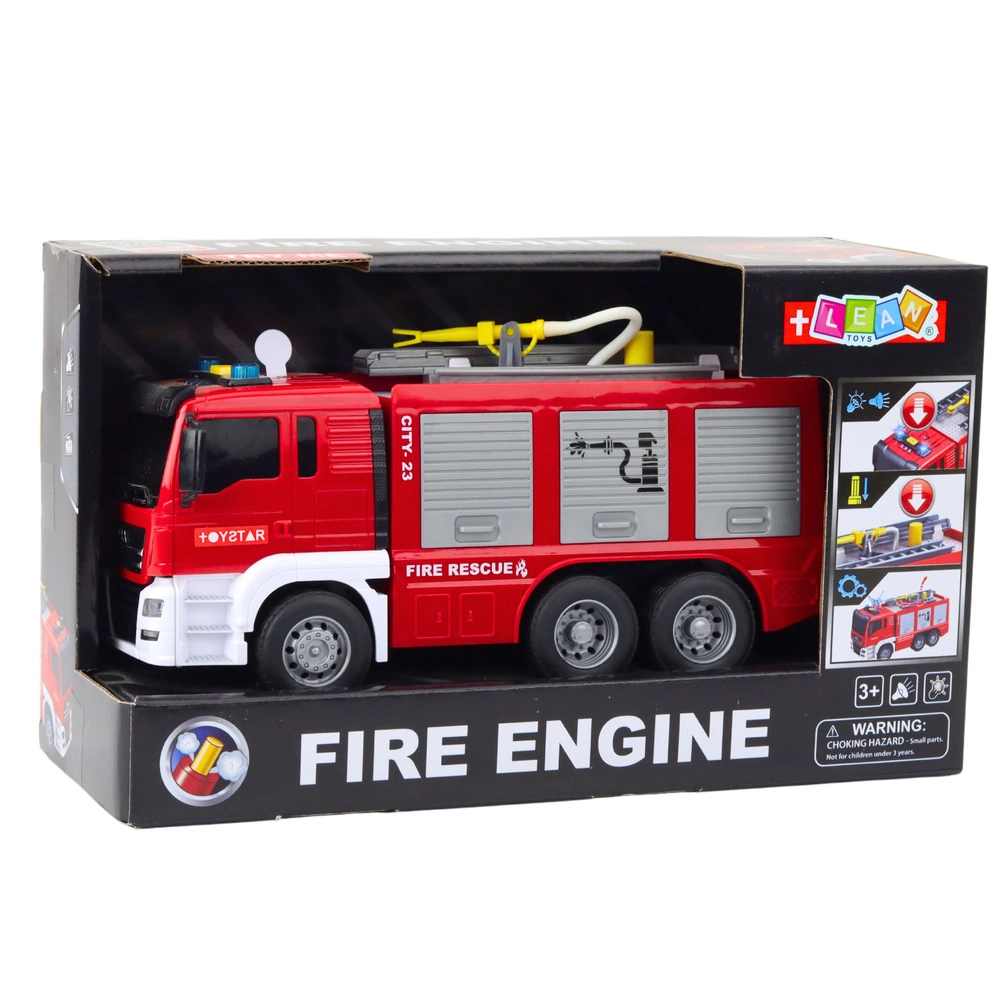 Velik gasilski avto bo vašemu otroku pričaral izkušnjo prave reševalne akcije. Avto je opremljen s pravo vodno posodo in prožno cevjo, ki omogočata realistično igro pri »gašenju požarov« z nalivanjem vode. Ta podrobnost zagotavlja, da bo igra še bolj realistična in zabavna. Pogonski mehanizem na vztrajnik poskrbi, da se avto po rahlem potisku sam pelje naprej, pripravljen na akcijo.