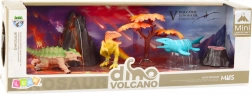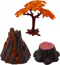 Komplet realističnih figur dinozavrov z vulkanom in drevesom