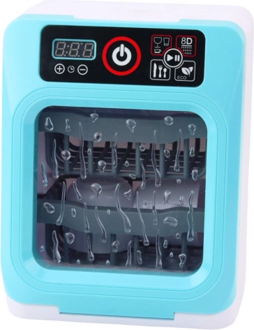 Zahvaljujoč zvočnim in svetlobnim učinkom ter funkciji nastavitve časa se otrok lahko počuti kot pravi gostitelj gospodinjstva. Upravljanje poteka preko na dotik občutljivega panela z rdečim gumbom, ki zažene izbrani program.