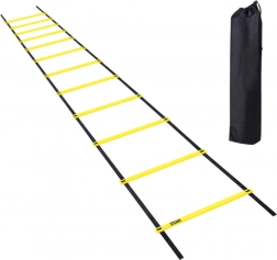 Set vsebuje praktično transportno torbo, ki lestev ščiti med shranjevanjem in prenašanjem ter preprečuje zapletanje z drugo opremo. Lestev je enostavna za razgrnitev in zavzame malo prostora, zato jo lahko uporabljate na igriščih, na vrtu, v fitnesih ali športnih dvoranah.