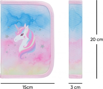 Set za prvošolce BAAGL Zippy plus Mavrični Samorog z lahko in odporno šolsko aktovko, enonadstropno peresnico in praktično vrečko. Vse komponente so izdelane iz okolju prijaznih materialov in ponujajo vrsto praktičnih funkcij.