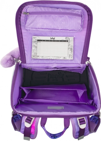 Šolska aktovka Zippy Plus zagotavlja maksimalno udobje in ergonomijo zahvaljujoč drsnemu hrbtnemu sistemu, ki omogoča nastavitev na tri različne velikosti. Aktovka raste z otrokom, opremljena je z odstranljivim ledvenim pasom, preglednim notranjim organizatorjem in posebno termo žepom za malico. Dizajn dopolnjujejo odsevni elementi in značke za prilagoditev videza aktovke.