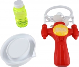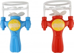Le nalijte raztopino za mehurčke v priloženo posodico, potopite glavo z obroči in pritisnite napajalni gumb. Vgrajeni ventilator takoj zavrti obroče in sprosti tok nežnih mehurčkov, ki so kot nalašč za vrt, park ali otroško zabavo.