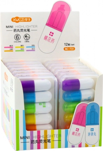 Mini označevalci imajo kompaktne mere 5,5 × 2 cm, zato se prilegajo v vsak peresnik, kozmetično torbico ali organizator. Njihova kapsulna oblika ne le pritegne pozornost, temveč tudi olajša držanje. Celoten komplet je shranjen v praktičnem plastičnem etuiju, ki olajša shranjevanje in prenašanje brez tveganja izgube.
