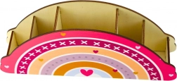 Organizator ne le da poživi vsako mizo, temveč ponuja tudi pet predalčkov različnih širin za udobno shranjevanje pisal in pripomočkov, kot so svinčniki, barvice, škarje ali čopiči. Njegove kompaktne dimenzije (30 × 12,8 × 8,2 cm) so idealne za otroško sobo, učni kotiček ali vrtec.