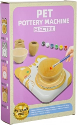 Set vsebuje električno lončarsko kolo, mehko glino, orodja in barve za lahke začetke s keramiko.