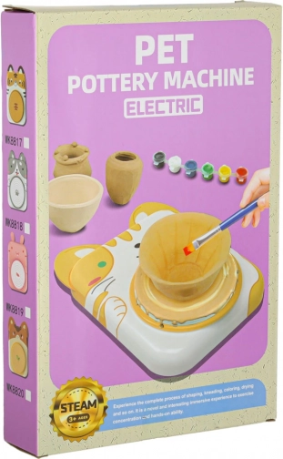 Set vsebuje vse potrebno za takojšnji začetek keramične avanture: električno lončarsko kolo, mehko lončarsko glino, set orodij in barve za okraševanje. Ta komplet je zasnovan z mislijo na varnost otrok, da nudi zabavno in intuitivno uporabniško izkušnjo.