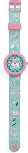 Otroška ura Djeco Konjiček je odličen dodatek za male ljubitelje konj. Ura ponuja: