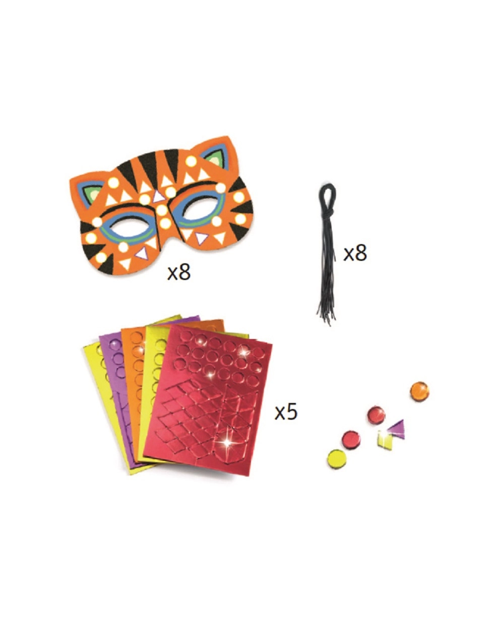 Kreativni set DJECO ponuja 8 papirnatih mask z živalmi iz džungle, ki jih lahko otroci okrasijo po svoji domišljiji. Zahvaljujoč metalnim nalepkam in elastiki za enostavno nameščanje maske lepo držijo in izstopajo na pustovanju, rojstnodnevni zabavi ali pri igri doma. Ustvarjanje razvija kreativnost, fino motoriko in estetski čut.