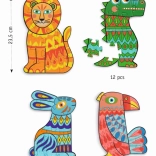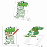 Odkrijte kreativne puzzle, ki jih otroci najprej obarvajo z barvami in vzorci po lastni domišljiji, nato pa jih sestavijo. Zahvaljujoč jasnim obrisom živalic je sestavljanje intuitivno, hkrati pa lahko bolj zahtevno, odvisno od izbranih barv. Idealna dejavnost za razvoj potrpežljivosti, domišljije in fine motorike.