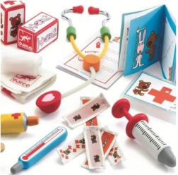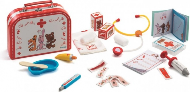 Doktorski kovček DJECO je idealna igrača za otroke, ki želijo postati mali zdravniki. Ta komplet spodbuja kreativno igro, razvoj socialnih veščin in empatijo. Vsebuje različna medicinska orodja, kot so stetoskop, termometer in še mnogo več.