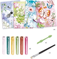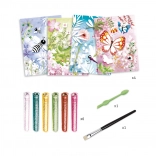 DJECO Peskanje Bleščeči metulji je ustvarjalni komplet, ki otrok omogoča izdelavo čudovitih in svetlečih metuljev s pomočjo peskanja.