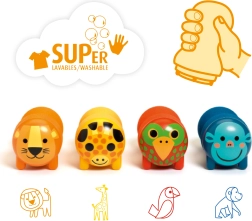 Odkrijte z vašimi najmlajšimi živalski svet safarija s tem čudovitim kompletom žigov od DJECO. Vsak žig ponuja edinstveno sliko, ki otrokom omogoča izraziti svojo kreativnost in domišljijo.