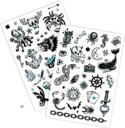 DJECO tetovaže Temni svet ponujajo unikaten dizajn, ki nagovarja tako otroke kot odrasle. Vsak set vsebuje različne motive, ki jih lahko kreativno kombinirate in ustvarjate edinstvene videze. Tetovaže so hipoalergene in enostavno odstranljive, kar zagotavlja, da jih lahko uživate brez skrbi.