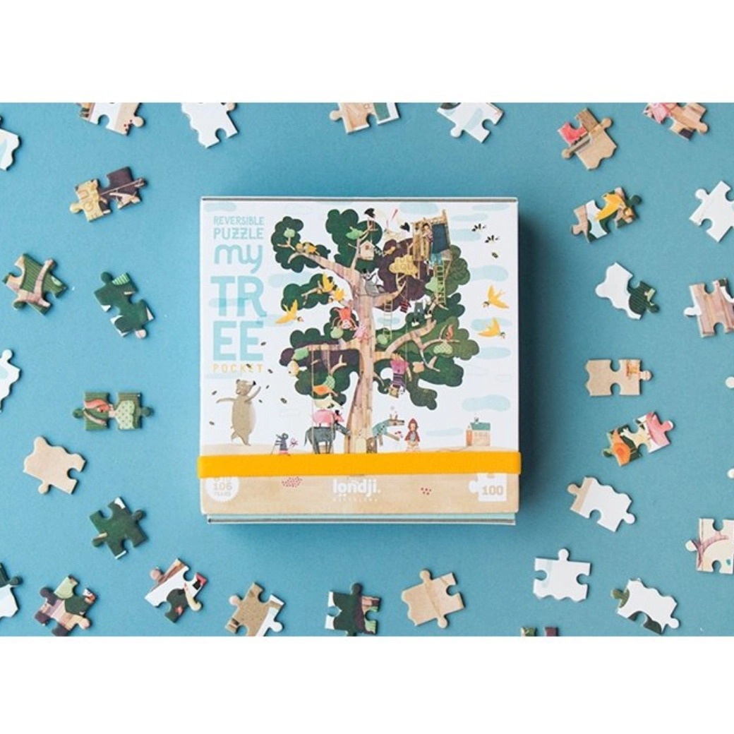 Odkrijte svet Londji s to edinstveno žepno dvostransko sestavljanko. Z ilustracijo drevesa na eni strani in presenetljivim dizajnom na drugi boste uživali v dvojni zabavi.