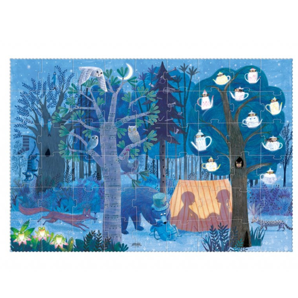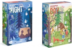 Zabavajte se z dvosmerno sestavljanko Dan in noč v gozdu, ki ponuja dve različni prizori z čudovitimi ilustracijami na eni sestavljanki. Idealna za razvoj otroške domišljije in fine motorike.