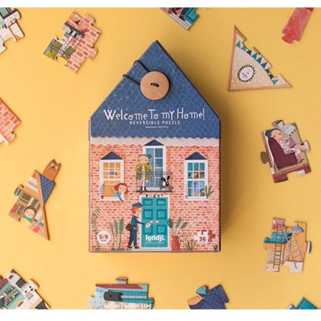 Uživajte v zabavi s to očarljivo sestavljanko "Dobrodošli doma" priznane znamke Londji. Sestavljanka je idealna ne le za ljubitelje sestavljank, temveč tudi za vse, ki si želijo doma v miru odpočiti in se posvetiti ustvarjalni dejavnosti.
