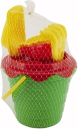 Vsebuje praktično vedro velikosti 12 cm, ki je opremljeno s sitkom za ločevanje večjih delcev peska. Komplet vključuje tudi lopatico, grablje in dva modelčka, ki omogočata vašemu otroku ustvarjanje originalnih peščenih gradov.