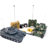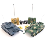 Uživajte v akcijski tankovski bitki s kompletom dveh RC tankov v merilu 1:28. Vsak tank ima vrtljivo kupolo za 330°, realistične zvočne učinke, svetlobne učinke, štetje »življenj« in zmore tudi vzpon do 45°. Daljinski upravljalniki delujejo na ločeni frekvenci 27/40 MHz za nemoteno bitko. V paketu so polnilne baterije za tanke in baterije za upravljalnike, tako da lahko igrate takoj po odprtju.