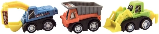 V pakiranju najdete različne tipe strojev, kot so bager, nakladač, buldožer ali prekucnik, ki skupaj ustvarjajo idealno osnovo za malo gradbišče. Zaradi kompaktnih mer so primerni za dom, vrtec in potovanja.