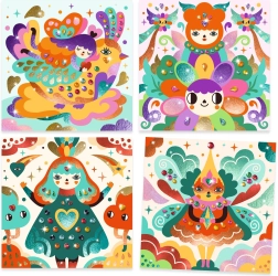 Folijske slike od DJECO ne ponujajo le čudovite zabave, ampak tudi način, kako spodbuditi otroško ustvarjalnost in spretnost. Ta set vsebuje: