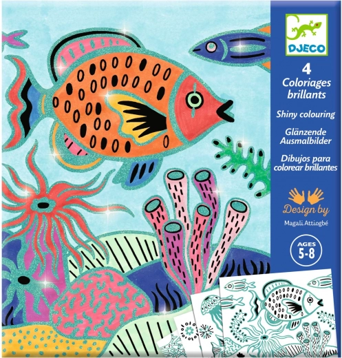 Odkrijte svet pod morjem s temi čudovitimi bleščečimi pobarvankami blagovne znamke Djeco. Vsak list je pripravljen, da ga pokrijete s sijočimi bleščicami, kar ustvarja osupljiv učinek.