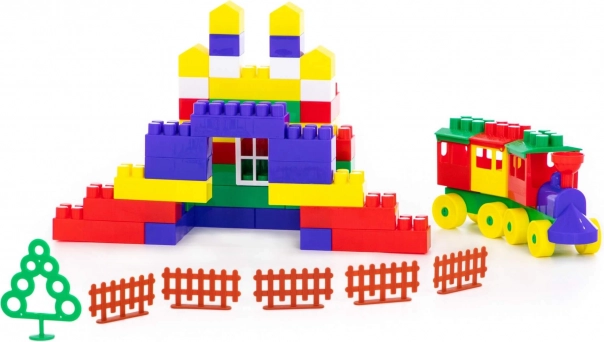 Set vsebuje širok nabor raznobarvnih blokov, ki spodbujajo razvoj ustvarjalnosti pri otrocih.