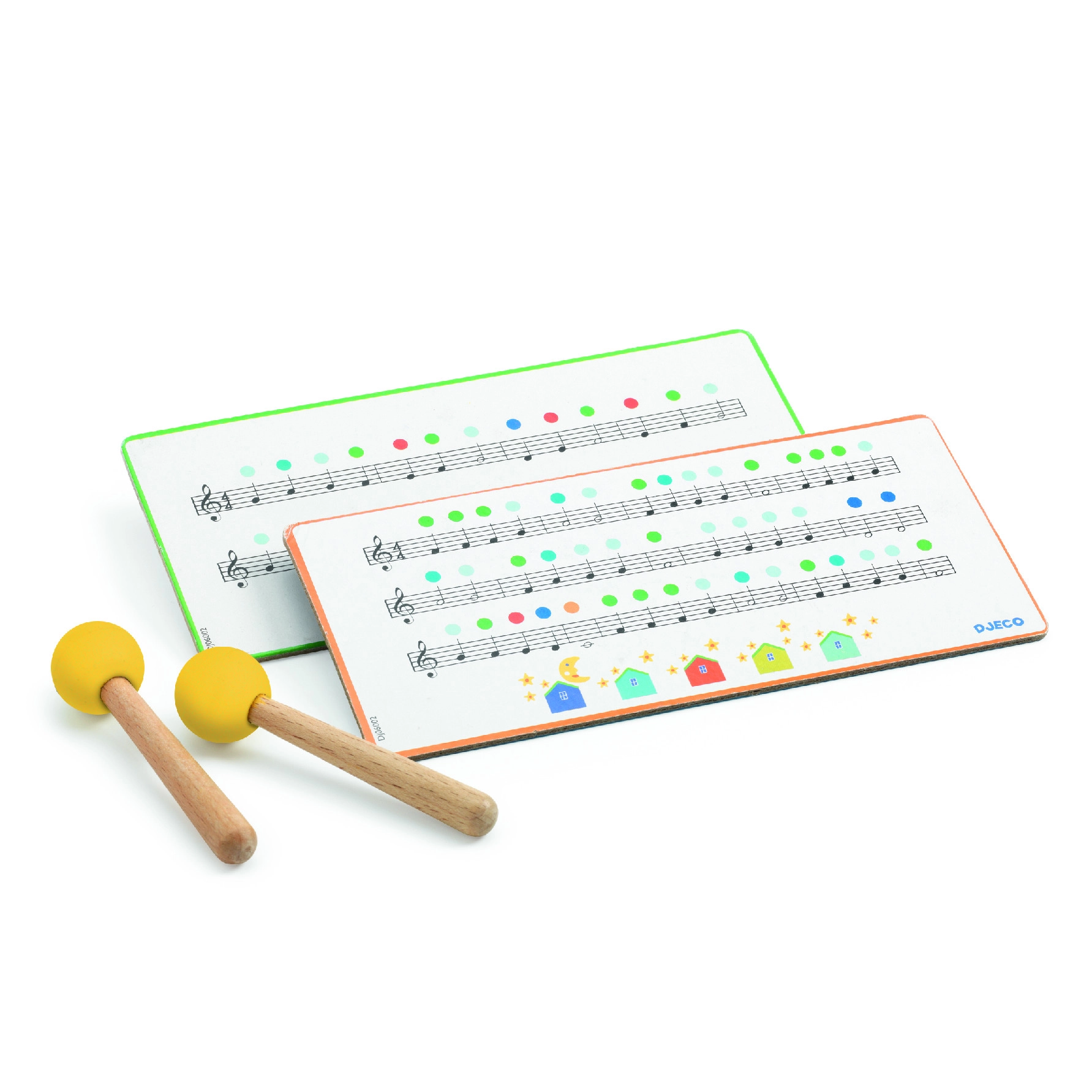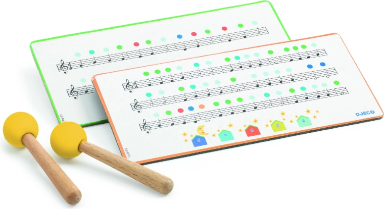 Oštevilčeni jezički in priloženi palčki omogočajo otrokom, da takoj zaigrajo prijetne melodije brez predhodnih izkušenj.