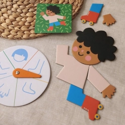 Zavrti ruleto in izberi delček, ki spada na figurico. Otroci se na naraven način učijo poimenovanja delov telesa in njihove pravilne umestitve na zabaven način.