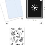 Komplet za cianotipijo znamke Djeco prinaša enostaven način za ustvarjanje impresivnih podob s pomočjo sončne svetlobe. Na fotocitljivi papir položite natisnjene vzorce, jih prekrijete s pleksi steklom, na kratko osvetlite in po izpiranju z vodo se prizor razkrije na prepoznavnem modrem ozadju. Rezultat je vedno presenetljiv in čudovit.
