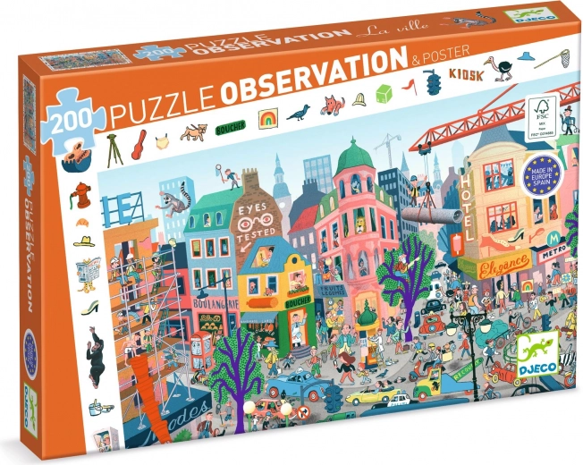 Odkrijte čar mestnega življenja s to čudovito ilustrirano iskalno sestavljanko Mesto znamke DJECO z več kot 200 kosi. Idealna igrača za otroke, ki razvija njihove opazovalne sposobnosti in domišljijo.