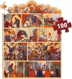 Popeljite otroke v svet vitezov okrogle mize. Story puzzle Kralj Artur znamke DJECO prinaša 100 koščkov z lepimi ilustracijami, ki bodo razveselile male raziskovalce od 5. leta naprej. Del paketa je tudi plakat za lažje sestavljanje ter 3 kartonske figurice za razvoj domišljijske igre.