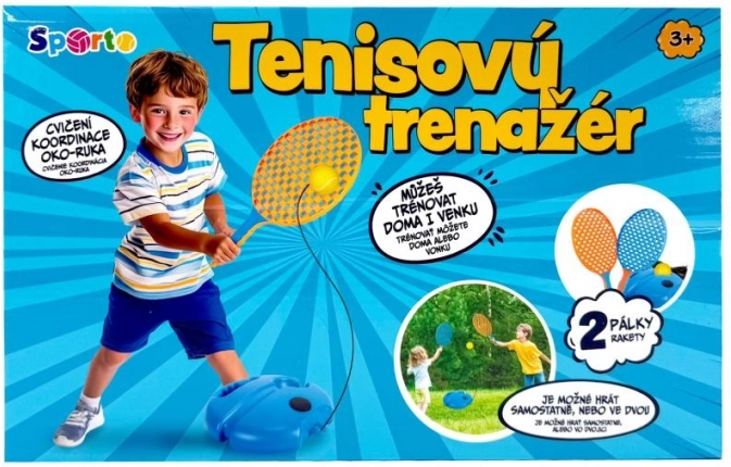Izboljšujte svojo tehniko kadarkoli in kjerkoli s setom Sporto. Ta teniški trenažer omogoča trening tudi brez partnerja – žogica je pritrjena na vrvico, zato se vedno vrne. Stabilnost zagotovi podstavek, napolnjen s tekočino, v paketu pa najdete vse potrebno: 2 loparja in žogico na vrvici. Odlično za otroke od 3 let ter za lahkotno družinsko igro.