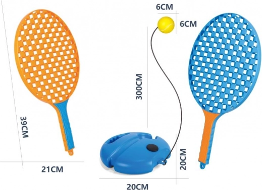 Del kompleta sta 2 lahka loparja, zato lahko igrate tudi v dvojici. Trenažer je idealen za otroke od 3 let, razveselil pa bo tudi odrasle pri sproščujočem odbijanju na vrtu, igrišču ali na dopustu.