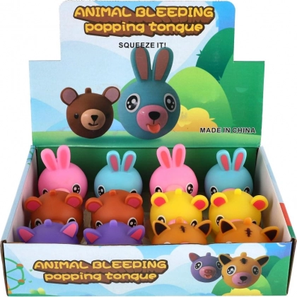 Gumijasta živalica s piskalom in izvlečnim jezikom je zabavna igrača, ki nasmeji vsakogar! Ob stisku zapiska in pokaže jezik – idealno za igralno zabavo in urjenje fine motorike.