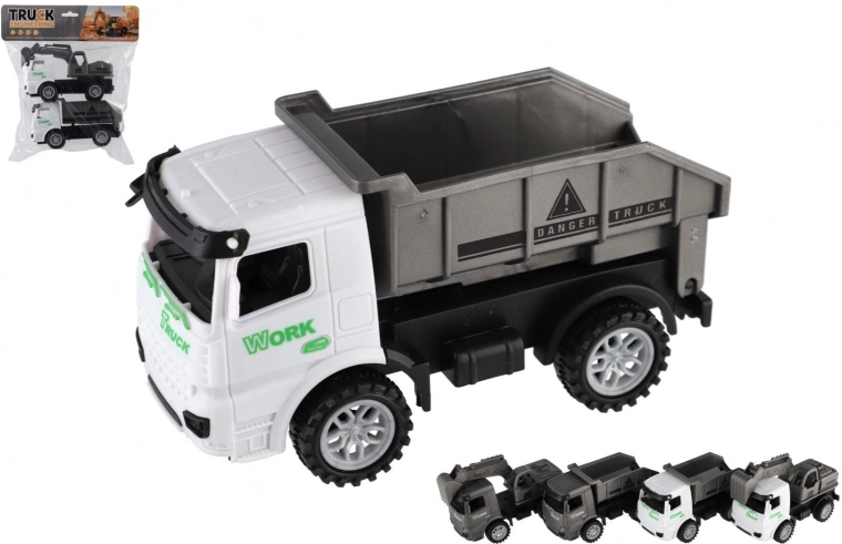 Ta odličen komplet gradbenih avtomobilčkov bo razveselil vsakega malega graditelja. Vsebuje 2 plastični vozili dolžine 15 cm z pogonom na vztrajnik – dovolj je potisniti in spustiti, vozili pa se zapeljeta naprej.