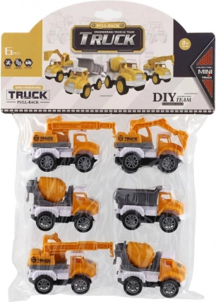 Odlična zbirka 6 mini gradbenih vozil bo razveselila vsakega malega graditelja. Avtomobilčki imajo povratni navijalni pogon, ki zagotavlja zabavno in dinamično igro.