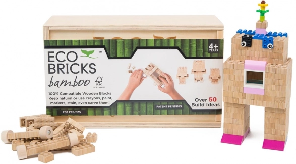 Lesena sestavljanka 250 kosov za razvoj ustvarjalnosti in motorike otrok. Shranjeno v praktični škatli.