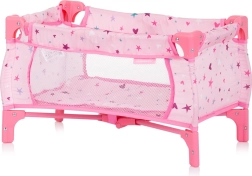 Praktična posteljica za punčke, ki se zloži na majhno velikost. Mere posteljice so 56 x 32 x 33 cm.