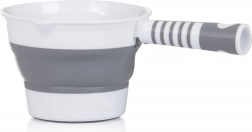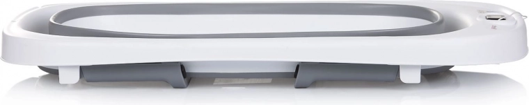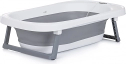 H kadici spada zložljivo vedro in lonček za izpiranje, kar olajša uporabo. Opremljena je z varnostnimi elementi, kot sta termometer in nedrseče nogice, kar zagotavlja stabilnost in varnost za vašega otroka. Za enostavno izpustitev vode ima kadica čep, ki odpravlja potrebo po dvigovanju kadice pri izpustu.