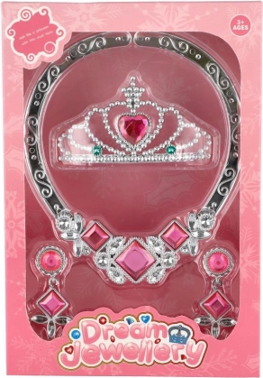 V trenutku postani princeska s tem očarljivim lepotnim kompletom, ki vsebuje vse, kar mala dama potrebuje za svoj kraljevski videz – bleščečo krono, ujemajočo se ogrlico in elegantne uhane.