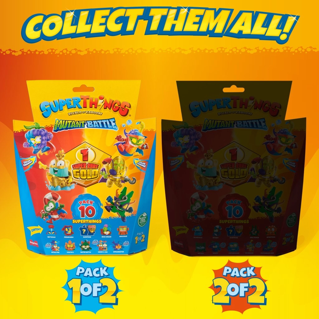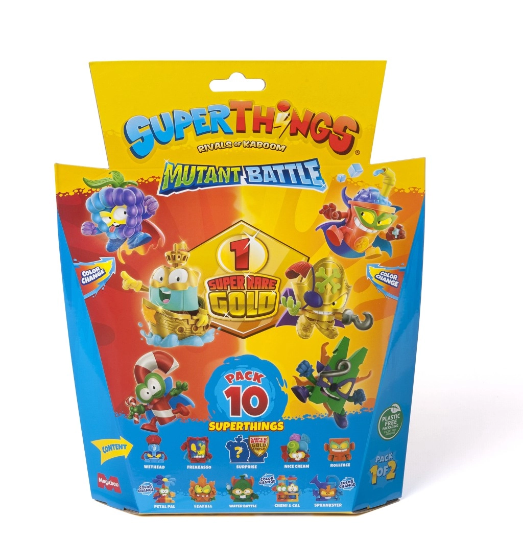 Želite hitro začeti ali razširiti svojo zbirko SuperThings Mutant Battle? Ta paket ponuja 10 figuric, vključno z enim zlatim junakom ali zlikovcem, in tri z funkcijo spreminjanja barve.