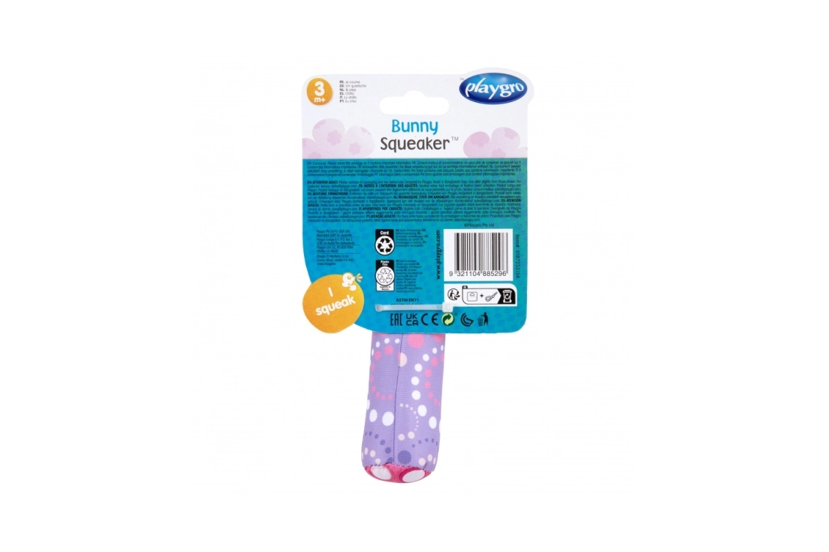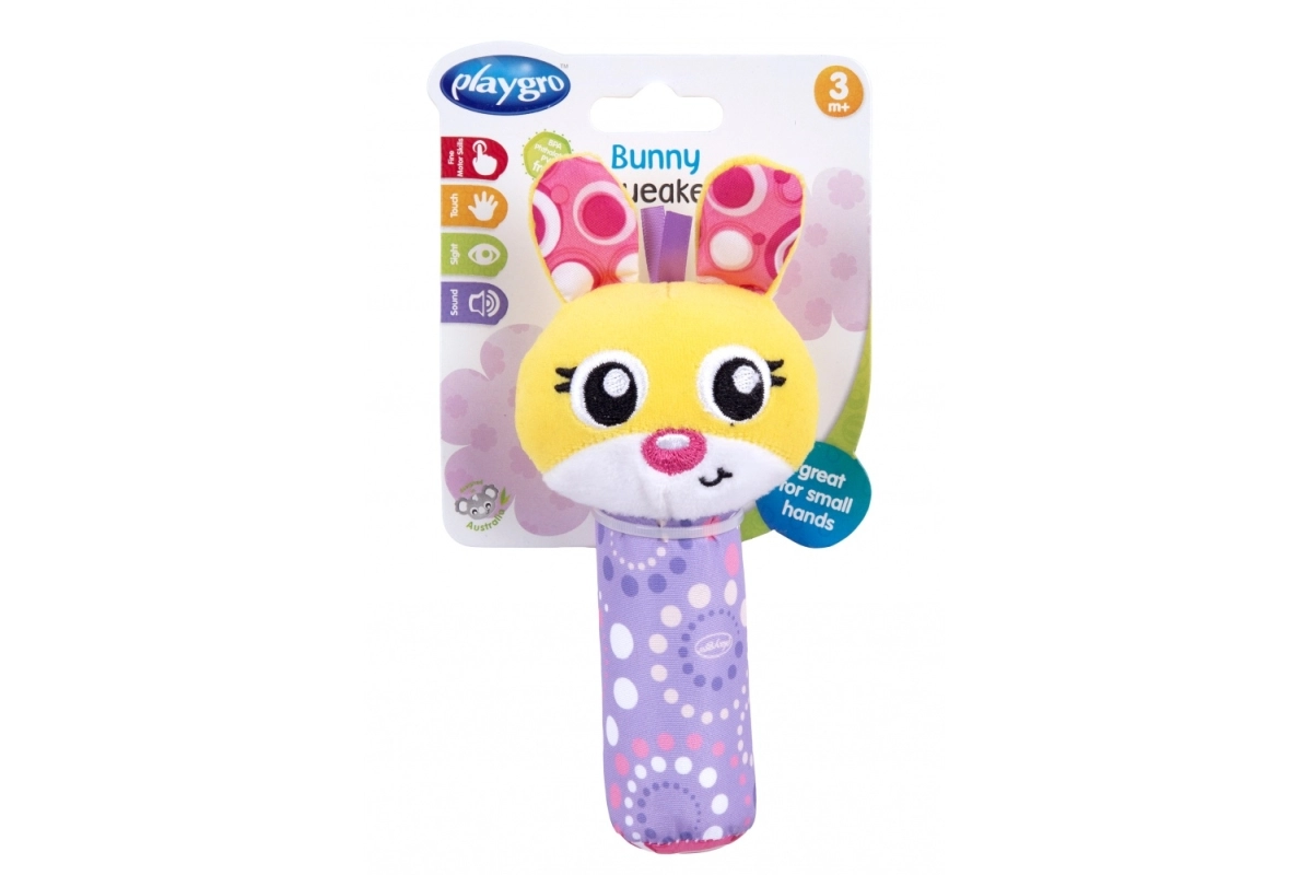 Piskalček Zajček Playgro je idealen spremljevalec za otroke od 3 mesecev. Zahvaljujoč ergonomskemu dizajnu in stimulativnim materialom pomaga razvijati otrokove čute.