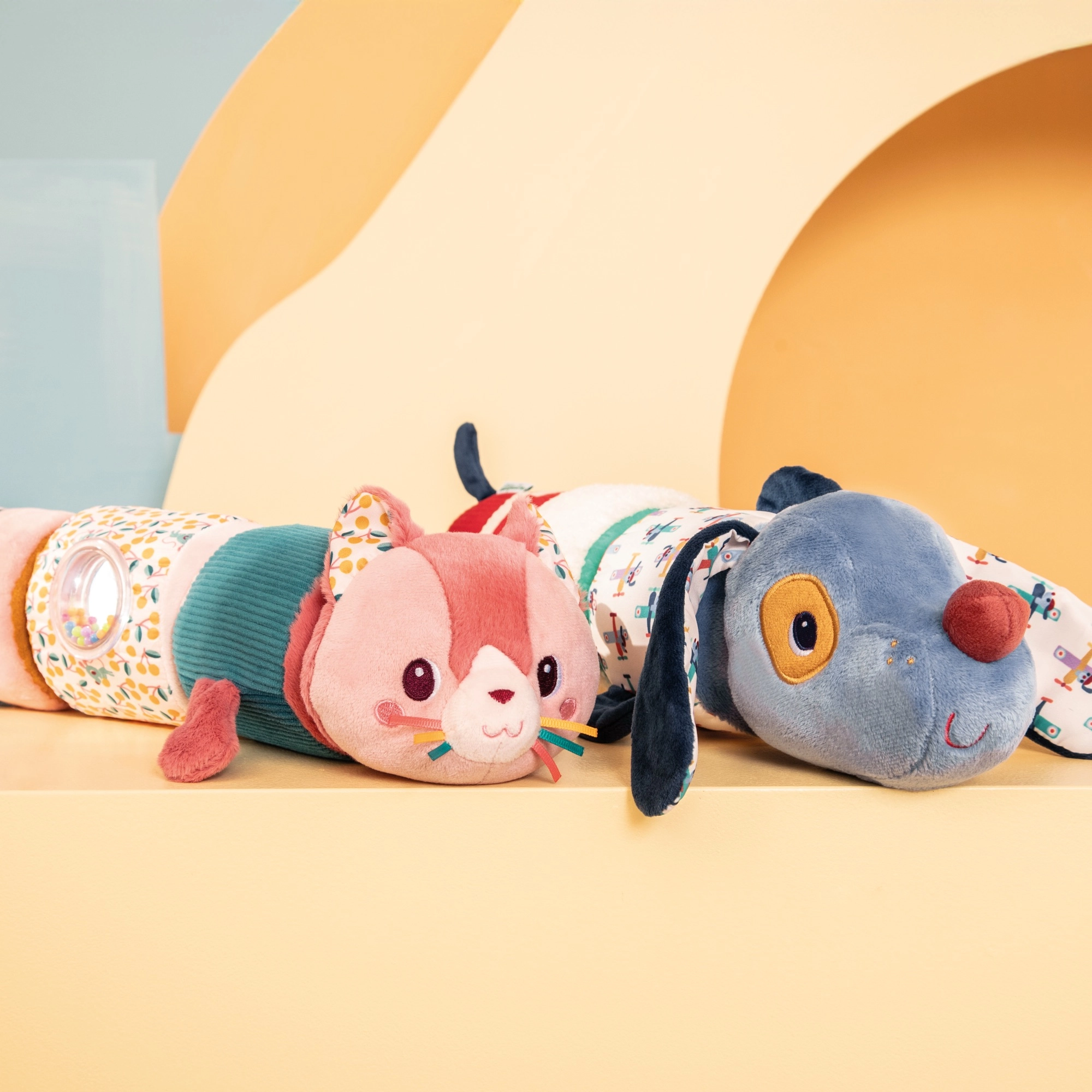 Velik ropotajoči valjček Lilliputiens v obliki kužka Julesa je popoln spremljevalec za vašega malčka. Sestavljen je iz štirih valjčkov, od katerih ima vsak svoj zvok in teksturo, zato je idealen za razvoj čutov.