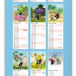 Privlačen stenski koledar z ilustracijami Zdeněka Milerja in praktičnim formatom v kravatski obliki. Koledar vključuje češko in slovaško koledarij z imeni, prazniki, spominskimi dnevi in luninimi menami.