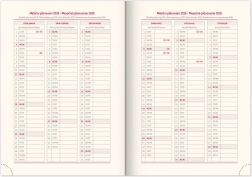Dnevni razpored s češko-slovaškim koledarjem in dopolnilnimi jeziki angleščino, nemščino, madžarščino in ruščino.