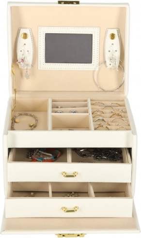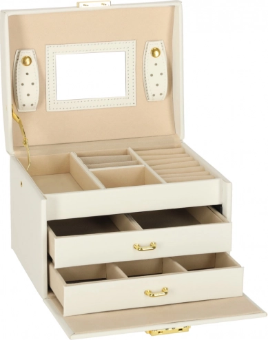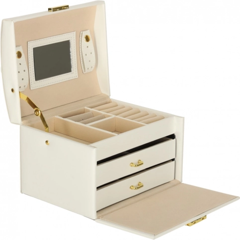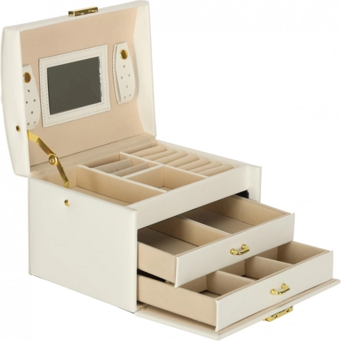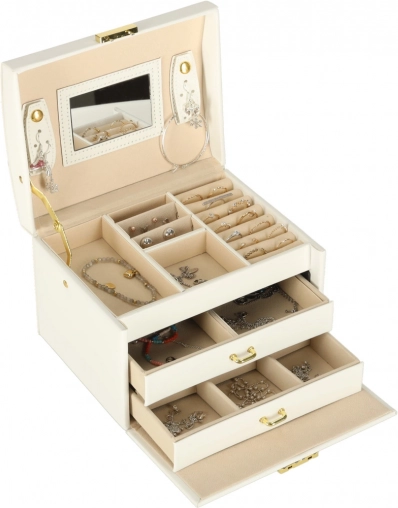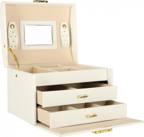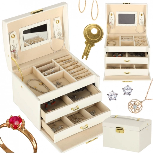 Vgrajeno ogledalo olajša jutranjo izbiro nakita, zaklepanje na ključ pa poskrbi za varnost, ko niste v bližini.