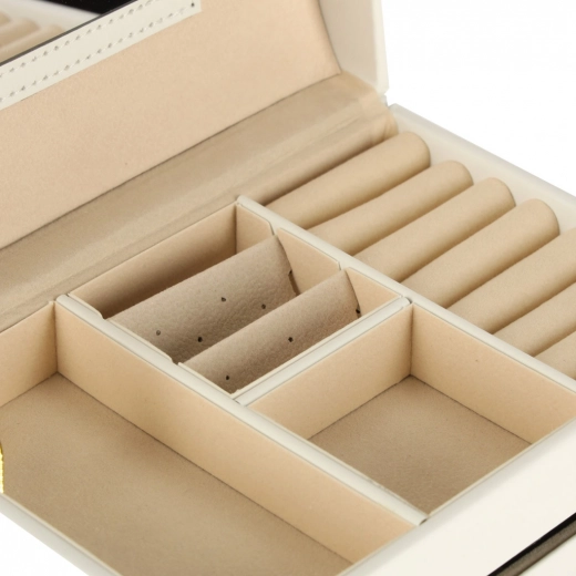 - Maksimalna preglednost: namenski razdelki za prstane, uhane, zapestnice in ogrlice.